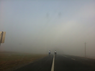 On Sunday the Famous Five rode out to Stromlo again in the fog (ideal conditions for smugglers), and raced the 84km final stage road race.